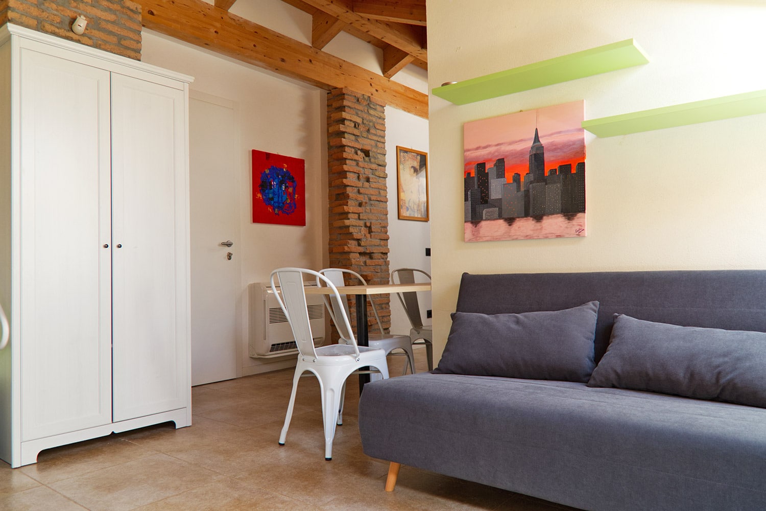 La chiave antica, simbolo di accesso ai segreti delle stalle e dei magazzini di un tempo, dà il nome a “La Cêva”, una Dimora ricavata nel sottotetto del Casale. Completamente rivestita in legno, questa stanza offre un ambiente caldo e accogliente, con letto matrimoniale, letti singoli, divano letto matrimoniale e angolo cottura. L’ampio bagno moderno e i dettagli storici, come le travi a vista, creano un’atmosfera intima e familiare, ideale per chi cerca un soggiorno che unisca tradizione e comfort.